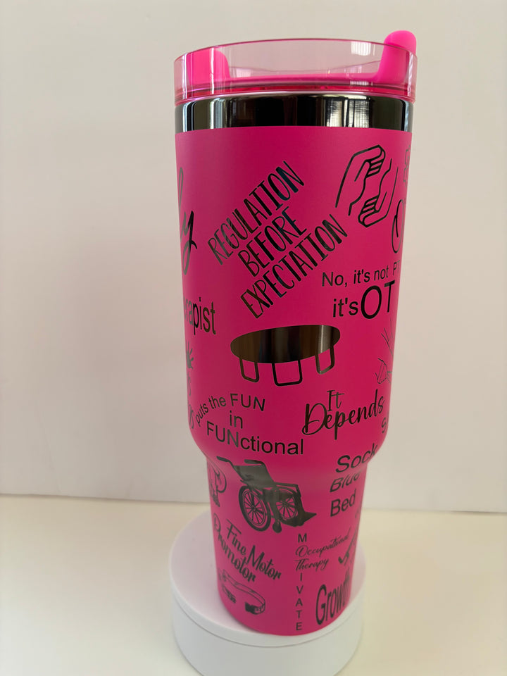 This 40 oz tumbler is designed for the occupational therapist who loves a splash of fun in their day. Featuring playful quotes that brighten your routine, it keeps your drinks cold for hours, perfect for staying refreshed during busy sessions. Add a little joy to your workday with a tumbler that’s as lively as you are!