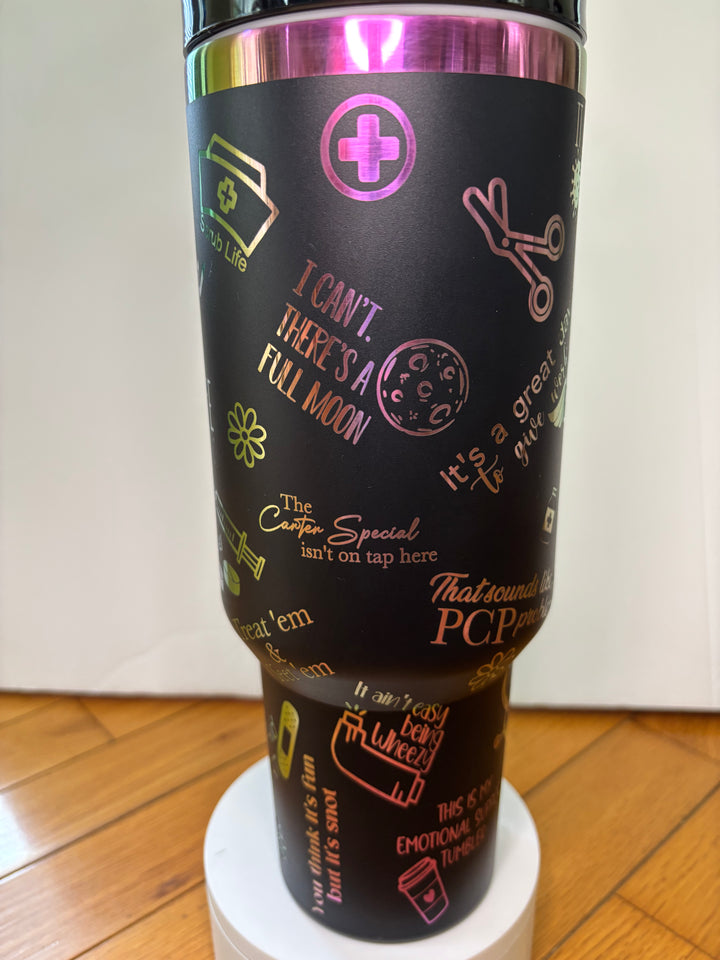 Stay refreshed and entertained during your shift with the Urgent Care Tumbler. Featuring fun, lighthearted quotes, it keeps your drink cold for hours—perfect for busy days and coffee breaks. A great way to bring a smile to your coworkers who appreciate a bit of humor while staying hydrated.